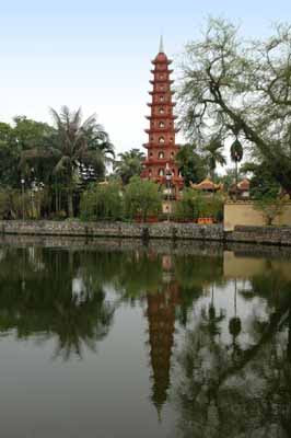 Chùa Trấn Quốc có hơn 1.500 năm tuổi, được xây dựng trên đảo Cá Vàng (Kim Ngưu) ở Hồ Tây.