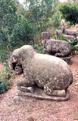 Tượng thú bằng đá (mỗi con cao gần 2 met)