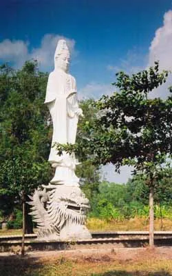 Ở đây còn có pho tượng có giá trị thẩm mỹ là pho tượng Bồ tát Quan Âm lộ thiên đứng trên đầu con rồng, cao 17m.